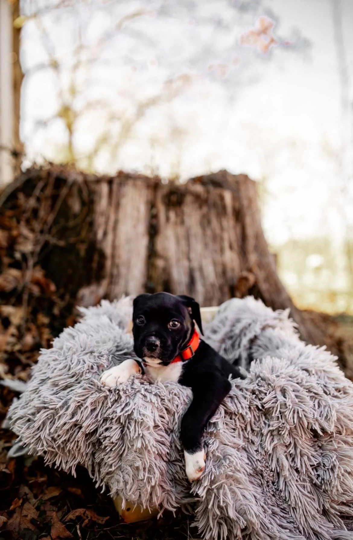 He is a puppy with a big personality wrapped in a cozy, snuggly body. Gibby is very dependent on his person and loves nothing more than being right by your side. Whether you’re sitting on the couch, moving around the house, or stepping outside, he is there — loyal, velcro-style, and ready to shower you with affection.