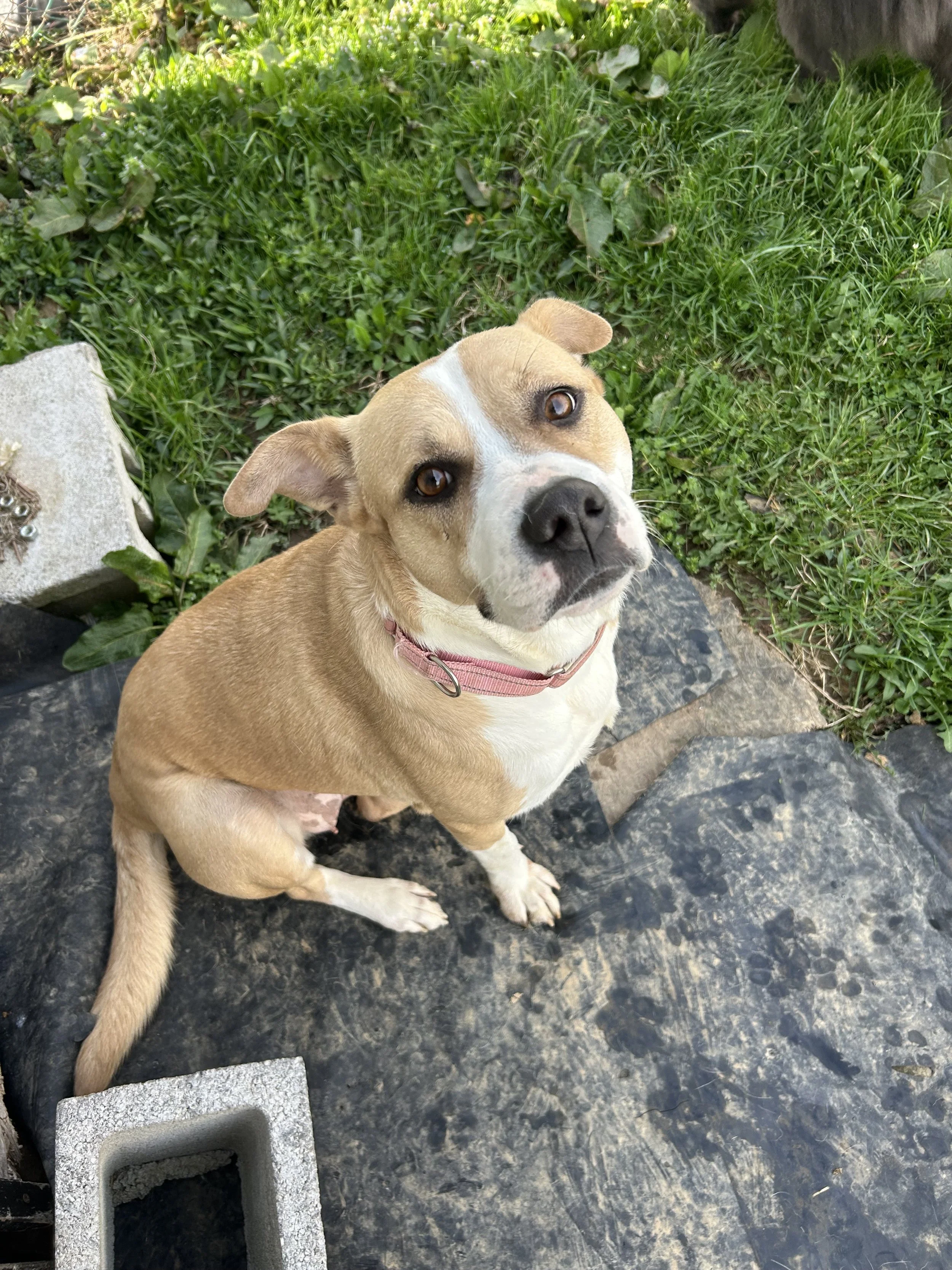 Millie is a BIG girl, weighing 80lbs, you can tell she is food motivated! She is fully potty-trained and does wonderfully in her kennel—a remarkable achievement considering she spent most of her life outdoors.